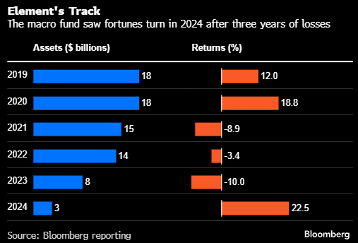 此举是Element减少外部投资者计划的一部分。它已经转向管理较少资产,目标是实现更高的回报。连续三年下跌使该基金在2021年至2023年期间下跌约20%。据报道,该基金去年实现了22.5%的回报率。
