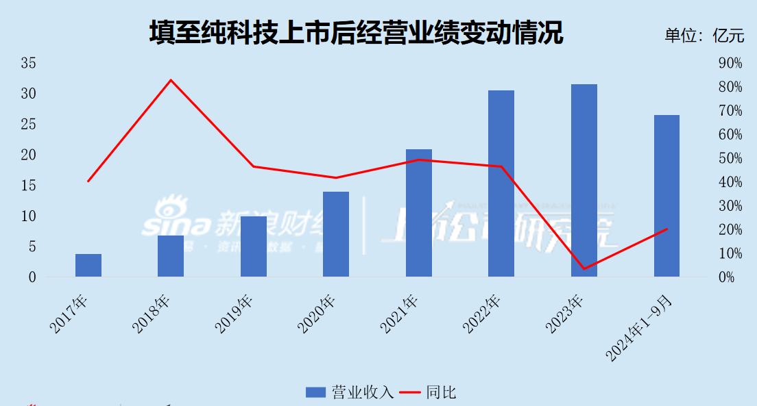2021年、2022年、2023年、2024年1-9月(下称“报告期”),至纯科技的营业收入分别为20.84亿元、30.50亿元、31.51亿元、26.39亿元,分别同比增长49.18%、46.32%、3.33%、20.04%;归母净利润分别为2.82亿元、2.82亿元、3.77亿元、1.93亿元,分别同比变动8.12%、0.24%、33.58%、-1.64%;扣非后归母净利润分别为1.62亿元、2.85亿元、1.02亿元、1.80亿元,分别同比变动46.57%、76.03%、-64.25%、19.30%。