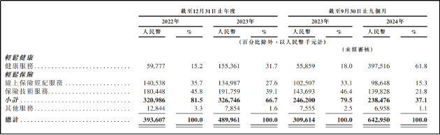 保险业务的衰退则更具信号意义,招股书显示,轻松健康的轻松保险服务最早于2016年12月推出,于往绩记录期间曾为公司贡献了大部分收入。2022年、2023年,公司总收入的81.5%、66.7%来自轻松保险服务。