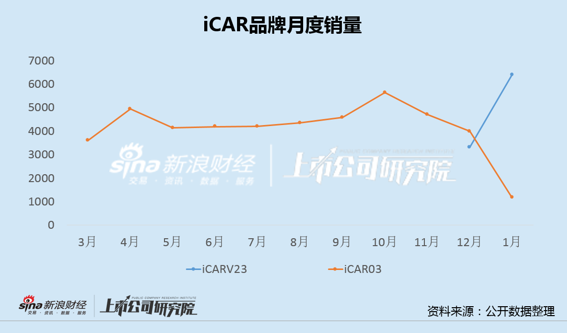 2023年初,奇瑞推出首个智能电动汽车品牌iCAR,2024年2月,首款车型iCAR 03开启交付。尽管该车定价仅10多万元,但月均销量只有4000余台,第二款车型V23去年12月上市后,更是跌至仅1000台。