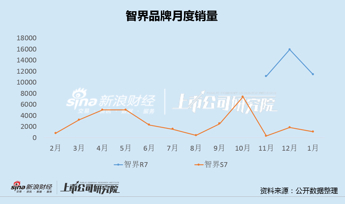 数据显示,智界首款车型S7上市一年,月均销量不足2600台。第二款车型R7于去年底交付,虽月销破万,但仍明显低于主要竞品理想L6平均2万台以上的月销量;不仅如此,R7上市两个月后,销量就出现了下滑,未来能否保持现有销量水平,也不得而知。