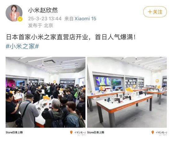 与此同时,小米董事长雷军3月22日在X平台以英文发文分享埼玉市首家门店开业的消息,并祝贺当地工作团队。