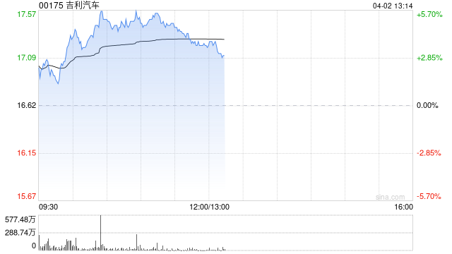 吉利汽车(00175)早盘股价上涨4.81%,现报17.42港元,成交额9.25亿港元。