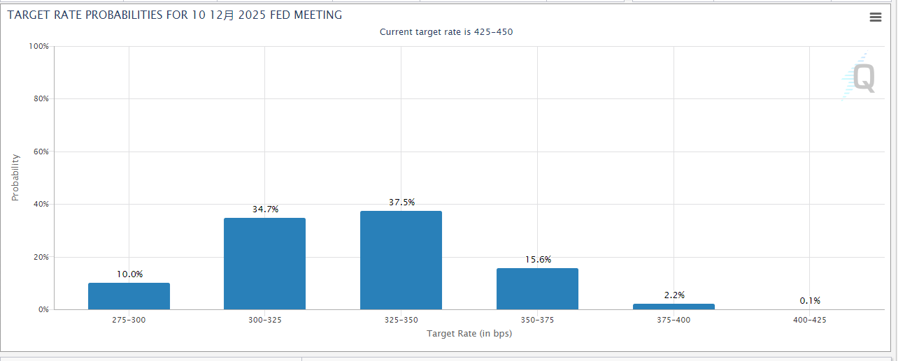 根据CME美联储观察工具FEDWATCH显示,在非农报告发布之后,市场预计美联储在年内有37.5%的概率降息4次,34.7%的概率降息5次。