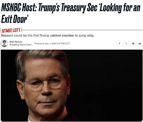 美国微软—全国广播公司网站相关报道截图贝森特“正在寻找退路”