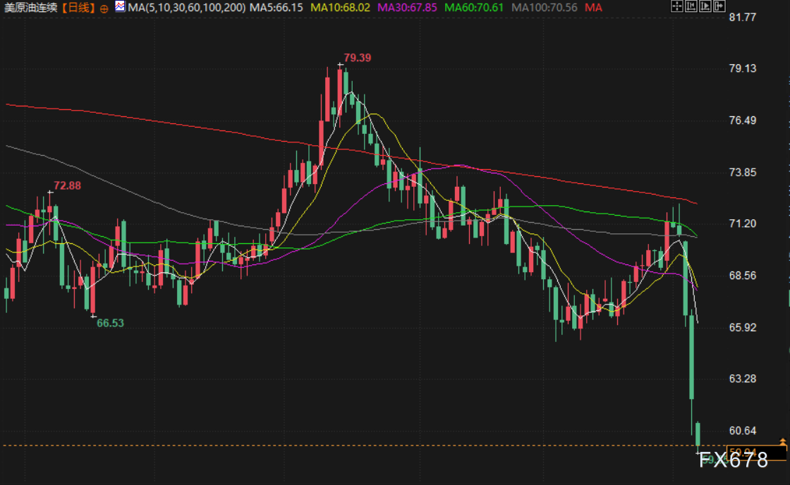 标普指数11个板块的跌幅均超过4.5%,其中能源板块连续第二日领跌,下跌8.7%,美国原油价格下跌7.3%。