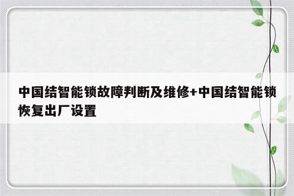大家好,今天小编来为大家解答以下的问题,关于中国结智能锁故障判断及维修,中国结智能锁恢复出厂设置这个很多人还不知道,现在让我们一起来看看吧!