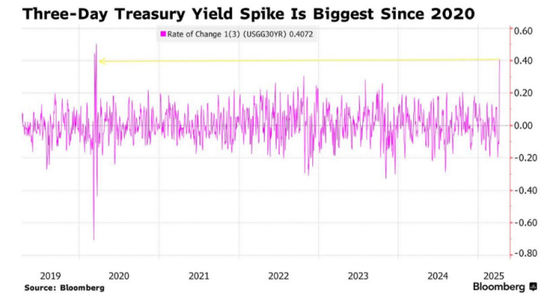 近日的美债剧烈震荡牵动着全球金融市场,万亿美债基差交易快速平仓导致收益率暴力拉升,10年期和30年期美债收益率三日内涨超50BPs。在关税冲击之下,美债并未为投资者提供庇护,反而突然失去了其避险吸引力。