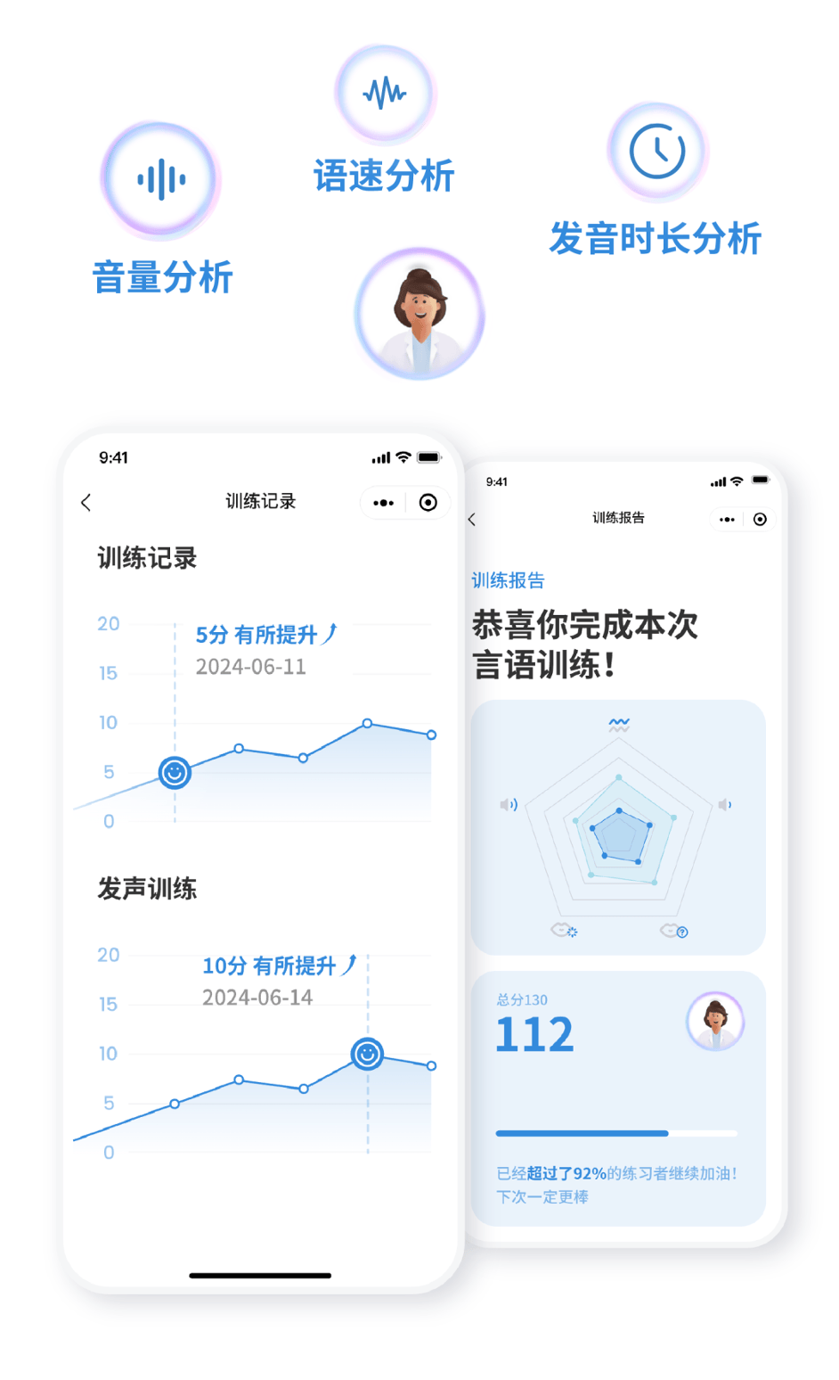 依托智医灵心的自然语言处理和实时音频分析能力,实时监测患者训练表现。通过即时反馈与纠正指导,确保患者每次训练范式执行精准无误,训练效果显著提高。