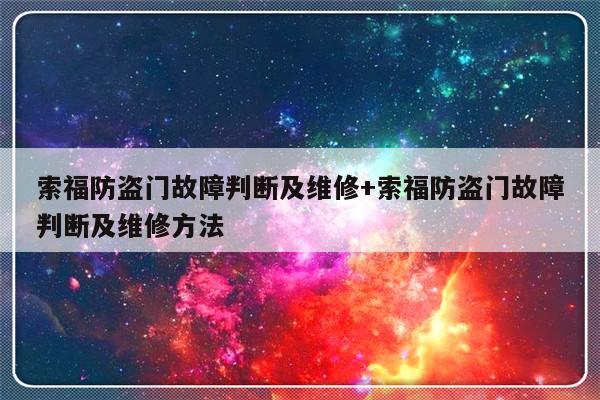 大家好,索福防盗门故障判断及维修相信很多的网友都不是很明白,包括索福防盗门故障判断及维修方法也是一样,不过没有关系,接下来就来为大家分享关于索福防盗门故障判断及维修和索福防盗门故障判断及维修方法的一些知识点,大家可以关注收藏,免得下次来找不到哦,下面我们开始吧!