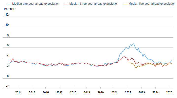 当前,美联储的官员们正在密切关注一系列类似指标,以评估特朗普推出的关税政策是否会带来更持续的通胀压力。至少纽约联储的数据显示,关税尚未显著改变消费者的长期预期。