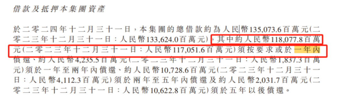 另外,截至2024年末,佳兆业总借款高达1350.74亿元,其中约88%为短期债务(约1181亿元),而账面现金仅剩6.98亿元;2024年合同销售额同比下降64.27%至80.57亿元,亏损扩大至约292.3亿元。