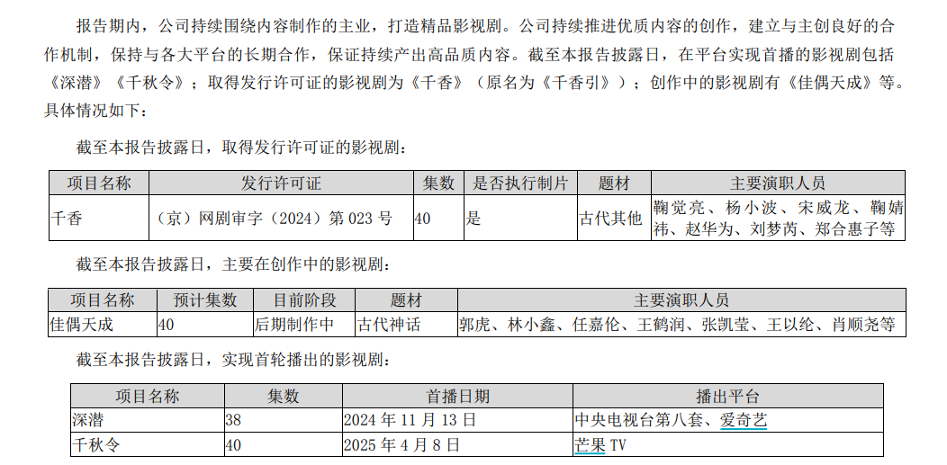 截至今年4月8日,电视剧《天下长安》合同资产账面余额为2.15亿元,全额计提减值准备,账面价值为0。同时,截至目前,《天下长安》的播出尚无明确安排。