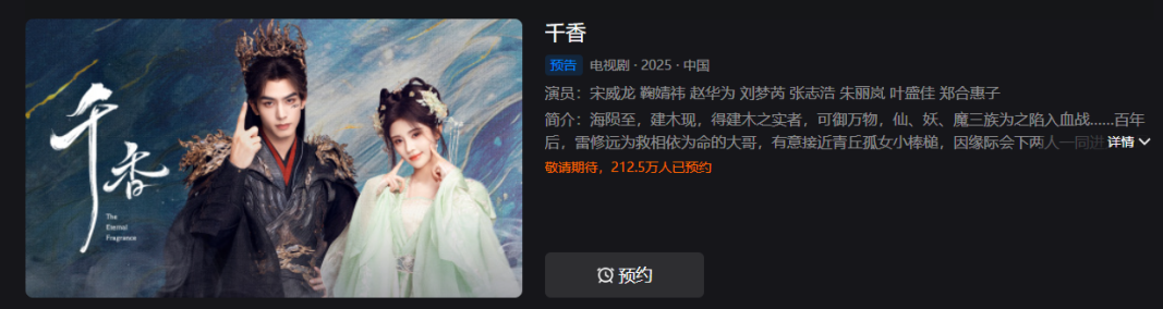 值得一提的是,《千香》早在2022年2月就已完成备案,并于2023年11月17日开机,2024年4月10日杀青。此前有消息透露称,该剧暂定今年4月11日于优酷全网开播,截至目前已跳票,具体播出时间仍是未知数。