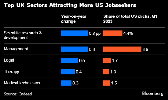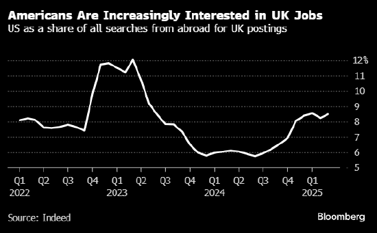 随着特朗普削减资金、加上经济前景日趋黯淡,越来越多美国人开始关注英国的就业机会。