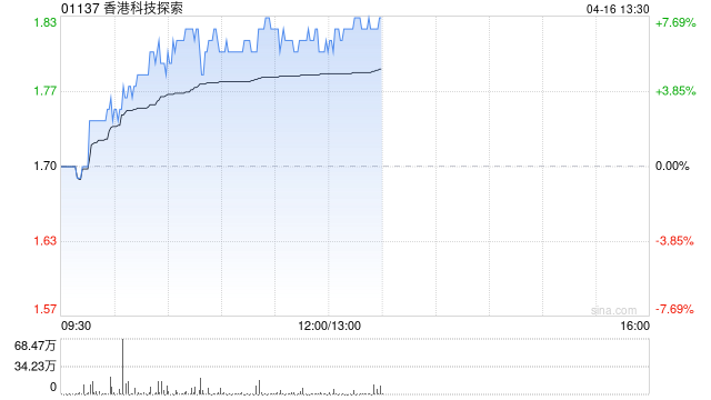 香港科技探索(01137)早盘逆市上涨7.06%,现报1.82港元,成交额772.11万港元。