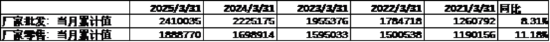汽车销量方面,25年3月汽车批发及零售销量同比增速分别为8.31%及11.18%,汽车销量维持较高水平。