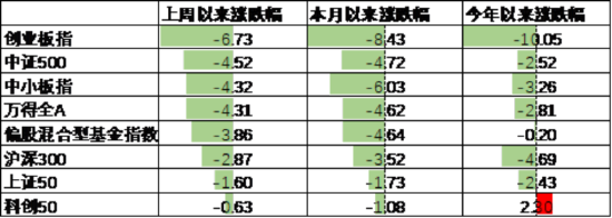 A股表现来看,上周主要板块有所下行,其中科创50跌0.63%,跌幅最小;创业板跌6.73%,跌幅最大。美国继续上调对华关税使得市场风险偏好下行,在此背景下A股有所下行。偏股基金指数跌1.44%。