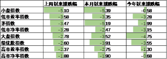 A股各风格指数中,高PB指数跌1.88%,表现最好;小盘指数跌5.10%,表现最差。市场风格大盘成长占优。