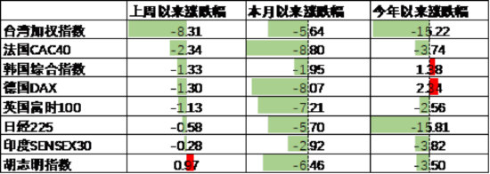 其他海外市场方面,台湾市场跌8.31%,表现最差;越南市场涨0.97%,表现最好。发达市场较新兴市场表现占优。