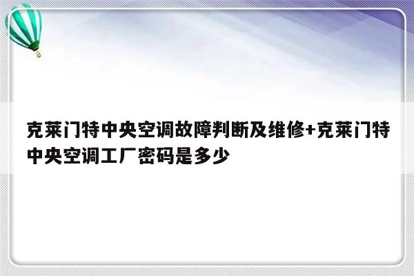 大家好,克莱门特中央空调故障判断及维修相信很多的网友都不是很明白,包括克莱门特中央空调工厂密码是多少也是一样,不过没有关系,接下来就来为大家分享关于克莱门特中央空调故障判断及维修和克莱门特中央空调工厂密码是多少的一些知识点,大家可以关注收藏,免得下次来找不到哦,下面我们开始吧!