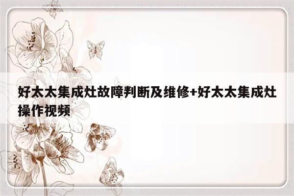 大家好,今天来为大家解答好太太集成灶故障判断及维修这个问题的一些问题点,包括好太太集成灶操作视频也一样很多人还不知道,因此呢,今天就来为大家分析分析,现在让我们一起来看看吧!如果解决了您的问题,还望您关注下本站哦,谢谢~