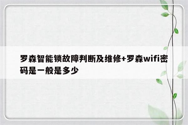 很多朋友对于罗森智能锁故障判断及维修和罗森wifi密码是一般是多少不太懂,今天就由小编来为大家分享,希望可以帮助到大家,下面一起来看看吧!