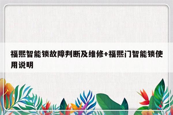 关于福熙智能锁故障判断及维修,福熙门智能锁使用说明的介绍到此结束,希望对大家有所帮助。
