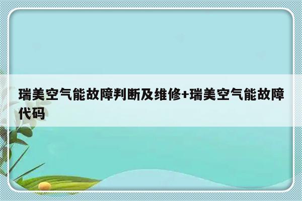 其实瑞美空气能故障判断及维修的问题并不复杂,但是又很多的朋友都不太了解瑞美空气能故障代码,因此呢,今天小编就来为大家分享瑞美空气能故障判断及维修的一些知识,希望可以帮助到大家,下面我们一起来看看这个问题的分析吧!