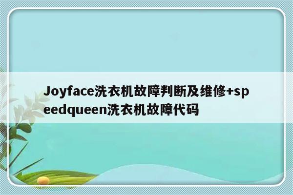 各位老铁们,大家好,今天由我来为大家分享Joyface洗衣机故障判断及维修,以及speedqueen洗衣机故障代码的相关问题知识,希望对大家有所帮助。如果可以帮助到大家,还望关注收藏下本站,您的支持是我们最大的动力,谢谢大家了哈,下面我们开始吧!