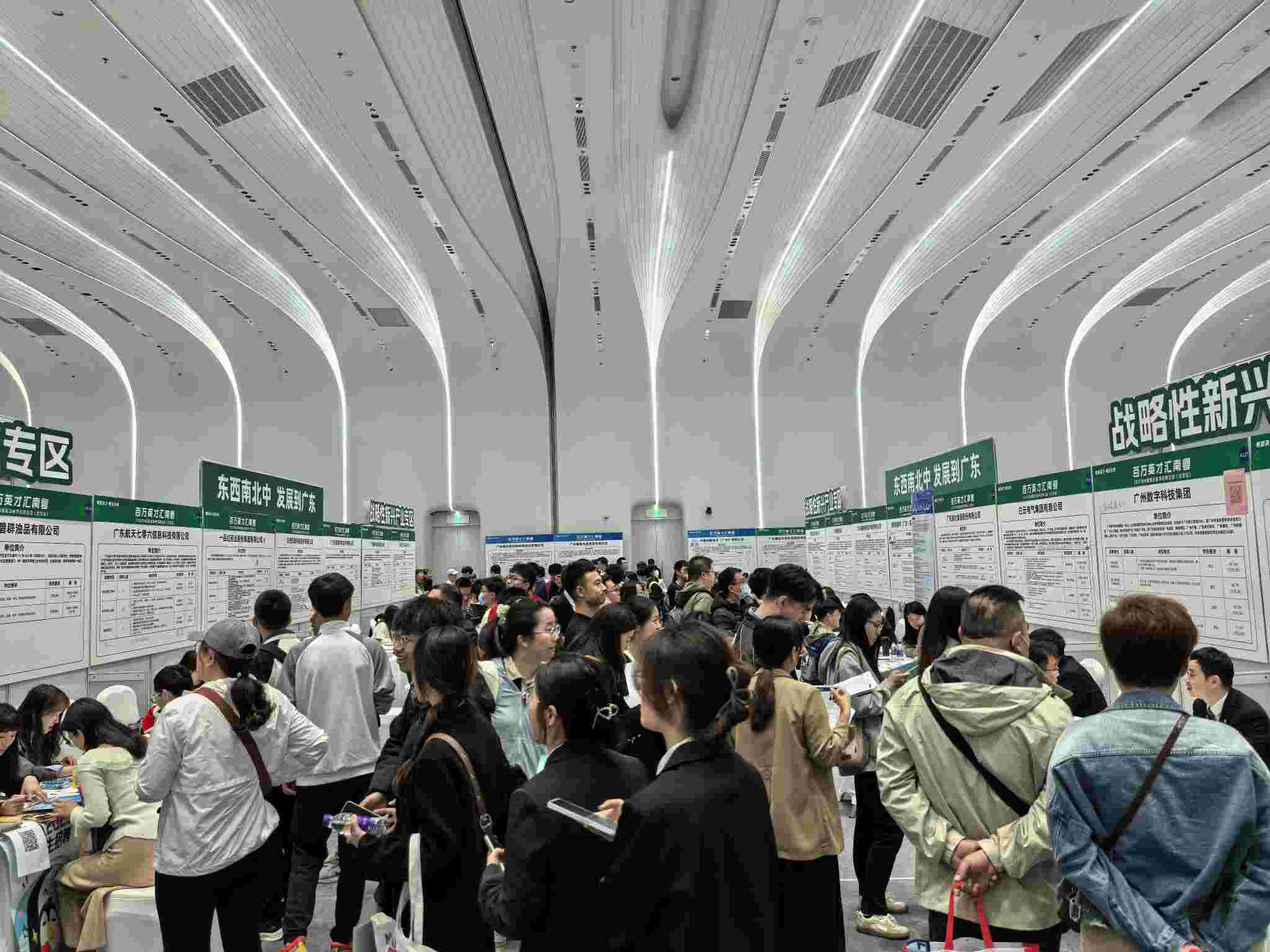 中山大学、中山大学眼科医院、广州实验室等高校科研院所广纳贤才,南方电网、广汽集团、广州工控等大型国企领衔出征,腾讯、视源电子等头部民营企业闪耀登场,创历年广东赴外招聘的“规格新高度”。本次招聘活动精准锚定广东现代化产业体系发展需求,超70%岗位深度嵌入智能网联与新能源汽车、生物医药、人工智能、低空经济等战略性支柱产业链,通过相关岗位精准引才,为现代化产业发展提供牢固的人才支撑。从基础研发到产业转化,从链式集群到生态构建,招聘企业与岗位的精准布局,勾勒“硬科技 + 新质生产力”双轮驱动的产业图景。通过此次精准引才,将为广东战略性支柱产业链注入大量新鲜血液,加速产业创新发展,推动产业规模在“十五五”实现新突破。