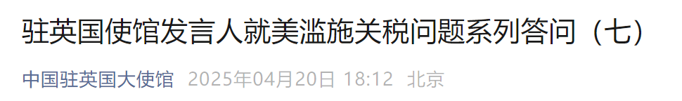 贸易战没有赢家,保护主义没有出路。如果美方一意孤行,中方将奉陪到底。我们绝不接受美方的极限施压和霸凌行径,必将采取坚决有力措施捍卫自身正当权益。我们注意到,美国国内以及国际社会都对美方“对等关税”措施表达了广泛的反对意见。