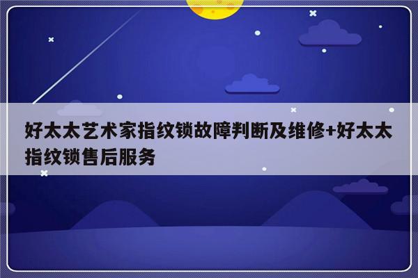 本篇文章给大家谈谈好太太艺术家指纹锁故障判断及维修,以及好太太指纹锁售后服务对应的知识点,文章可能有点长,但是希望大家可以阅读完,增长自己的知识,最重要的是希望对各位有所帮助,可以解决了您的问题,不要忘了收藏本站喔。