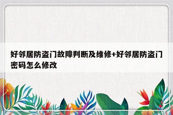 关于好邻居防盗门故障判断及维修到此分享完毕,希望能帮助到您。