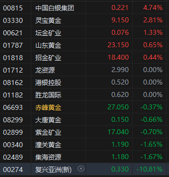 黄金股早盘冲高后下挫,灵宝黄金涨超2%。今日早间现货黄金持续拉升,突破3360美元/盎司,日内涨2.18%。美国对冲基金经理John Paulson最新表示,随着投资者从美国股票、债券和美元逃离至避险资产,同时全球贸易战的阴影笼罩经济前景,黄金正“迈向一个新的估值水平”。