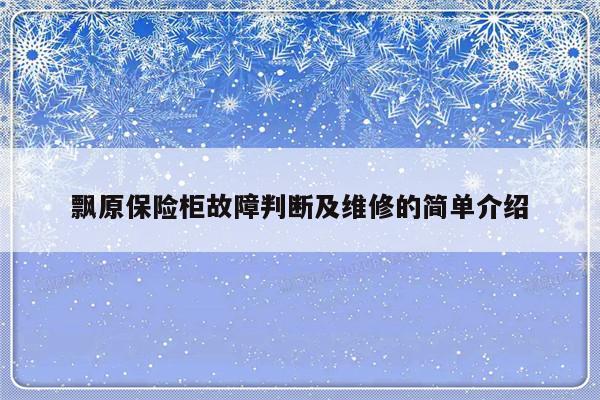 关于飘原保险柜故障判断及维修的内容到此结束,希望对大家有所帮助。