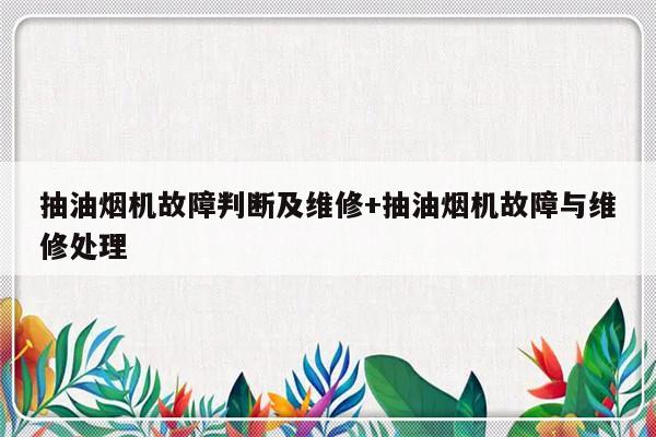 修油烟机常见故障排除方法有哪些