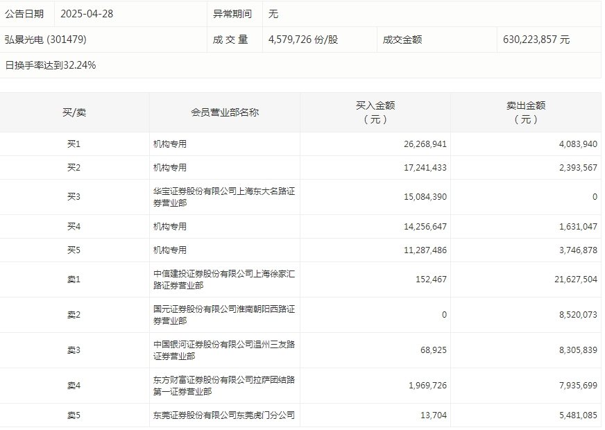 龙虎榜机构净买入19股 弘景光电居首