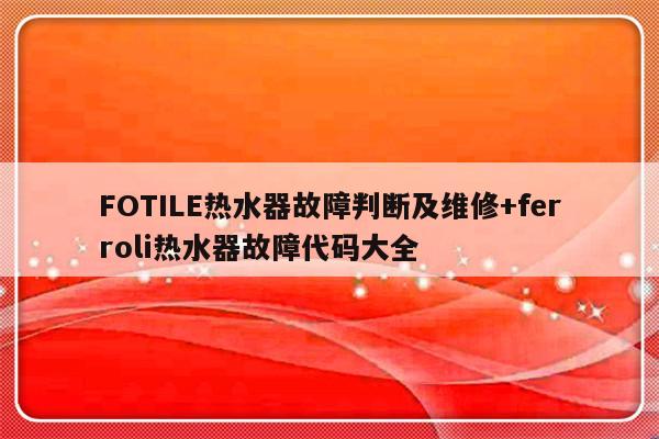 大家好,今天小编来为大家解答FOTILE热水器故障判断及维修这个问题,ferroli热水器故障代码大全很多人还不知道,现在让我们一起来看看吧!