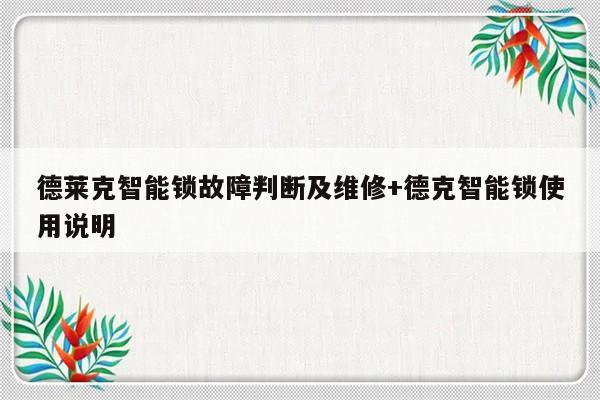 各位老铁们,大家好,今天由我来为大家分享德莱克智能锁故障判断及维修,以及德克智能锁使用说明的相关问题知识,希望对大家有所帮助。如果可以帮助到大家,还望关注收藏下本站,您的支持是我们最大的动力,谢谢大家了哈,下面我们开始吧!