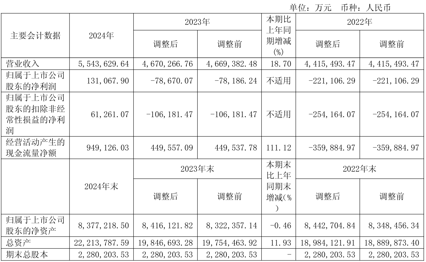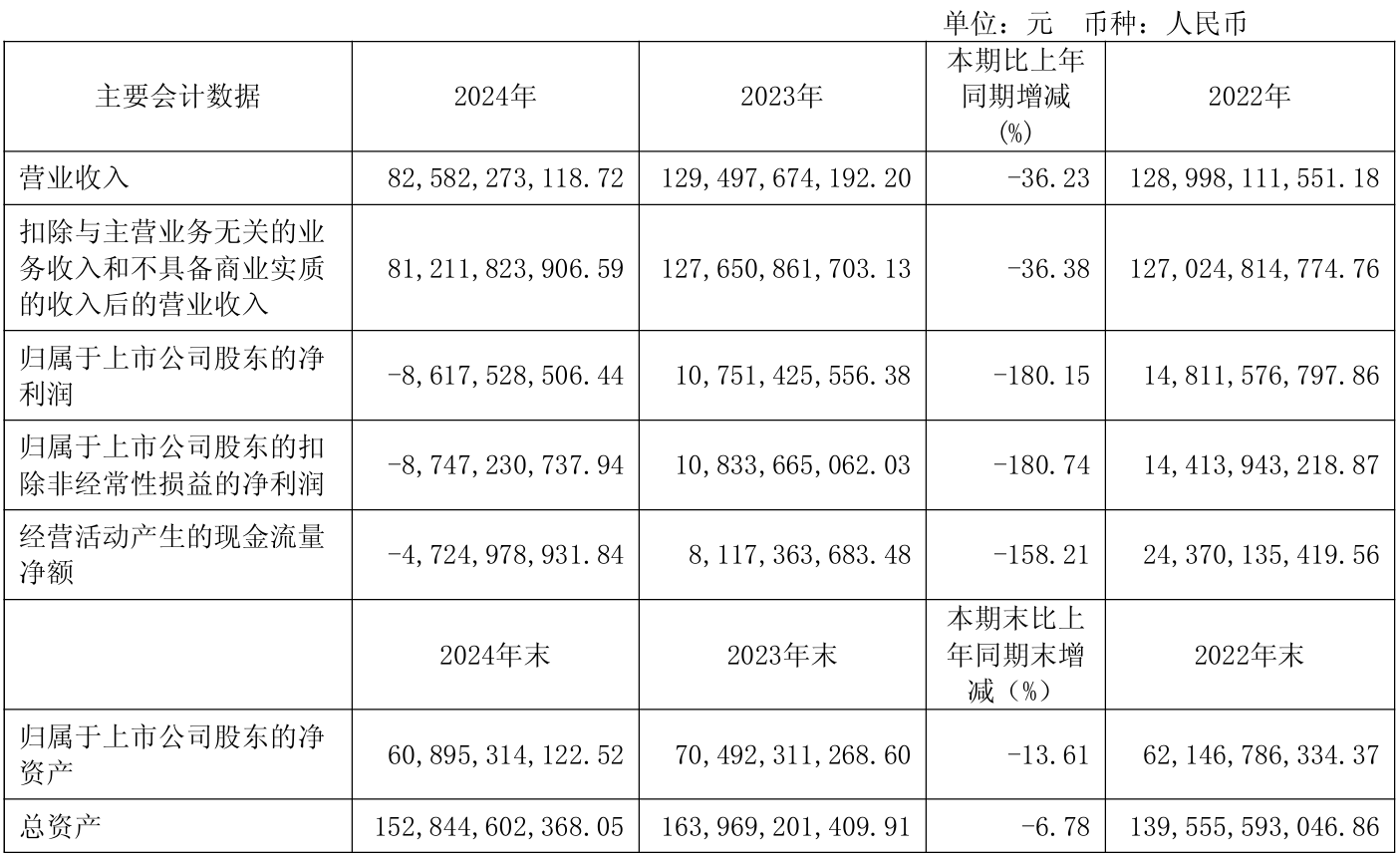 隆基绿能(601012.SH)发布2024年报和2025年一季度报,根据披露,报告期内,公司实现营业收入825.82亿元,同比下降36.23%,主要系组件和硅片等主要产品价格下降影响;归属于上市公司股东的净利润-86.18亿元,上年同期为107.51亿元;归属于上市公司股东的扣除非经常性损益的净利润-87.47亿元,上年同期为108.34亿元。