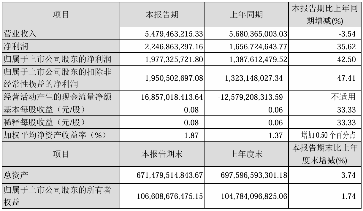 一季度实现营业收入170.15亿元,同比增长8.68%;归属于上市公司股东的净利润为51.81亿元,同比增长30.56%。主要原因是公司六座梯级电站发电量同比增加。