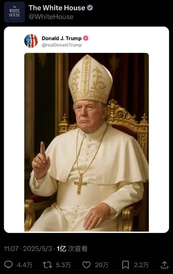 当地时间周五,特朗普的Truth Social账号上发布了一张通过人工智能将自己描绘成教皇的图片,很快便引发了强烈反对。
