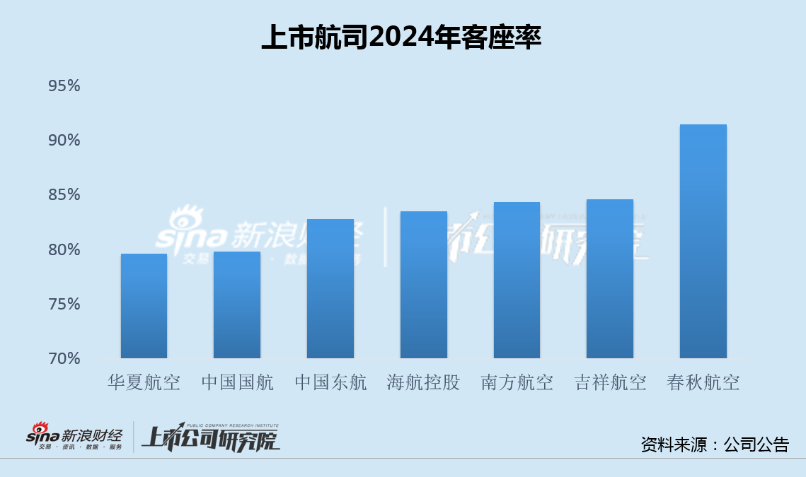 相比之下,华夏航空和中国国航的客座率均低于80%,分别为79.61%和79.85%,位列最末两位。