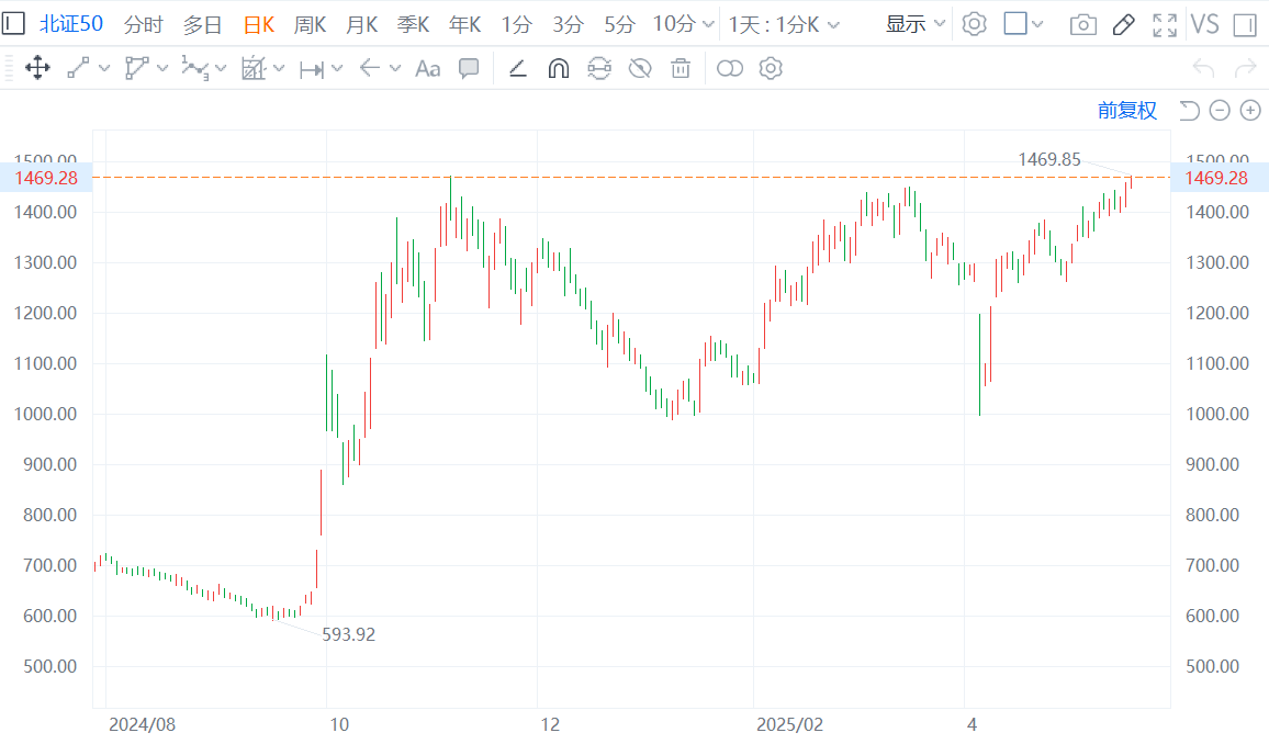北交所火了!北证50指数涨近1%,升穿前高至1469.85点,创历史新高