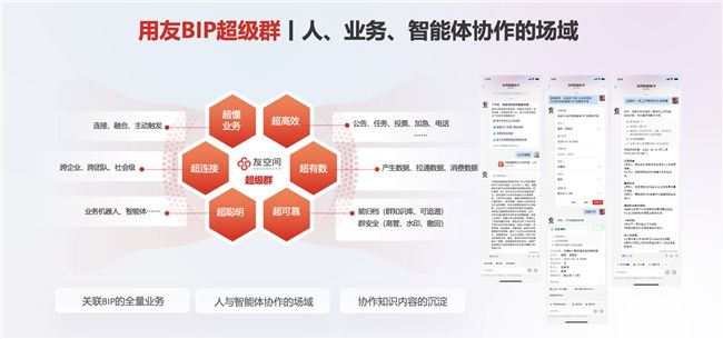 用友此次发布的 “用友 BIP 数智秘书、超级群、友闪记” 新品,通过“人 – 智能体 – 群”的创新驱动模式,深度融合 AI 技术与业务流程,为企业提供了更高效、智能的办公与业务协同解决方案。这一系列新品的推出,将助力企业在数智化浪潮中提升竞争力,实现业务效能的飞跃式提升,开启企业办公和业务协同的新篇章,引领行业朝着更加智能、高效的方向迈进。