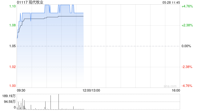 现代牧业(01117)午前股价上涨3.81%,现报1.09港元,成交额1525.31万港元。