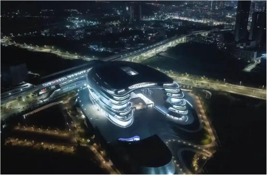 展馆由国际顶尖的建筑事务所扎哈·哈迪德建筑事务所操刀设计,建筑外观形似一艘巨型星际飞船。走进这座宛如“宇宙飞船”的建筑,人们不仅能够感受到科技的强劲脉搏,更能触摸到一座城市对人类文明进步的哲学思考。
