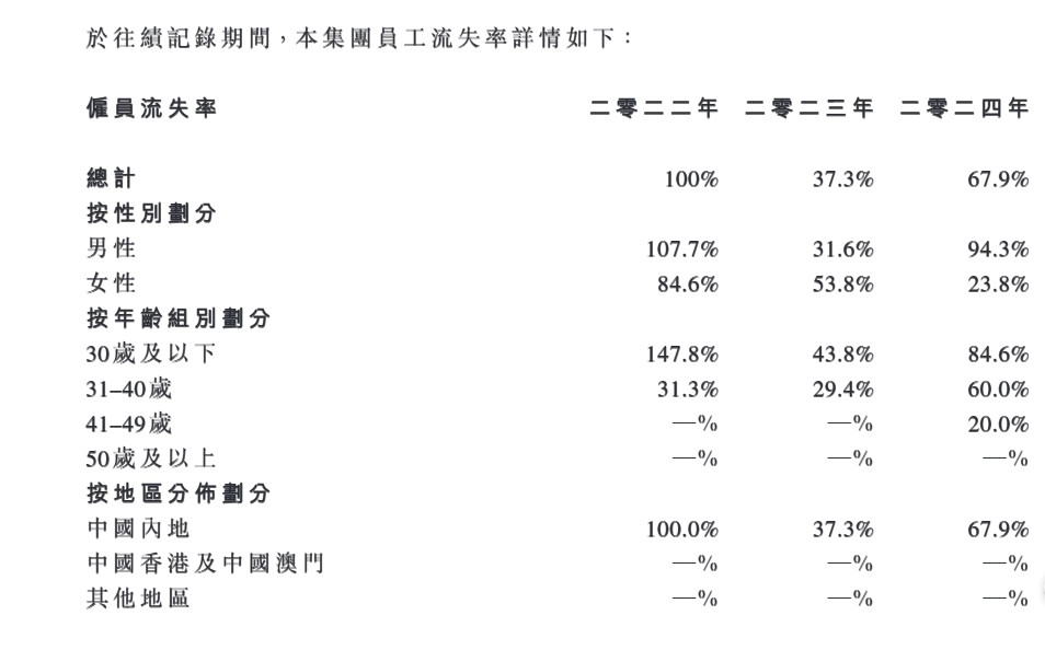 值得一提的是,随手播的员工流失率较高,各报告期分别为100%、37.3%及67.9%。特别是2024年,各年龄组的流失率均有较大涨幅。