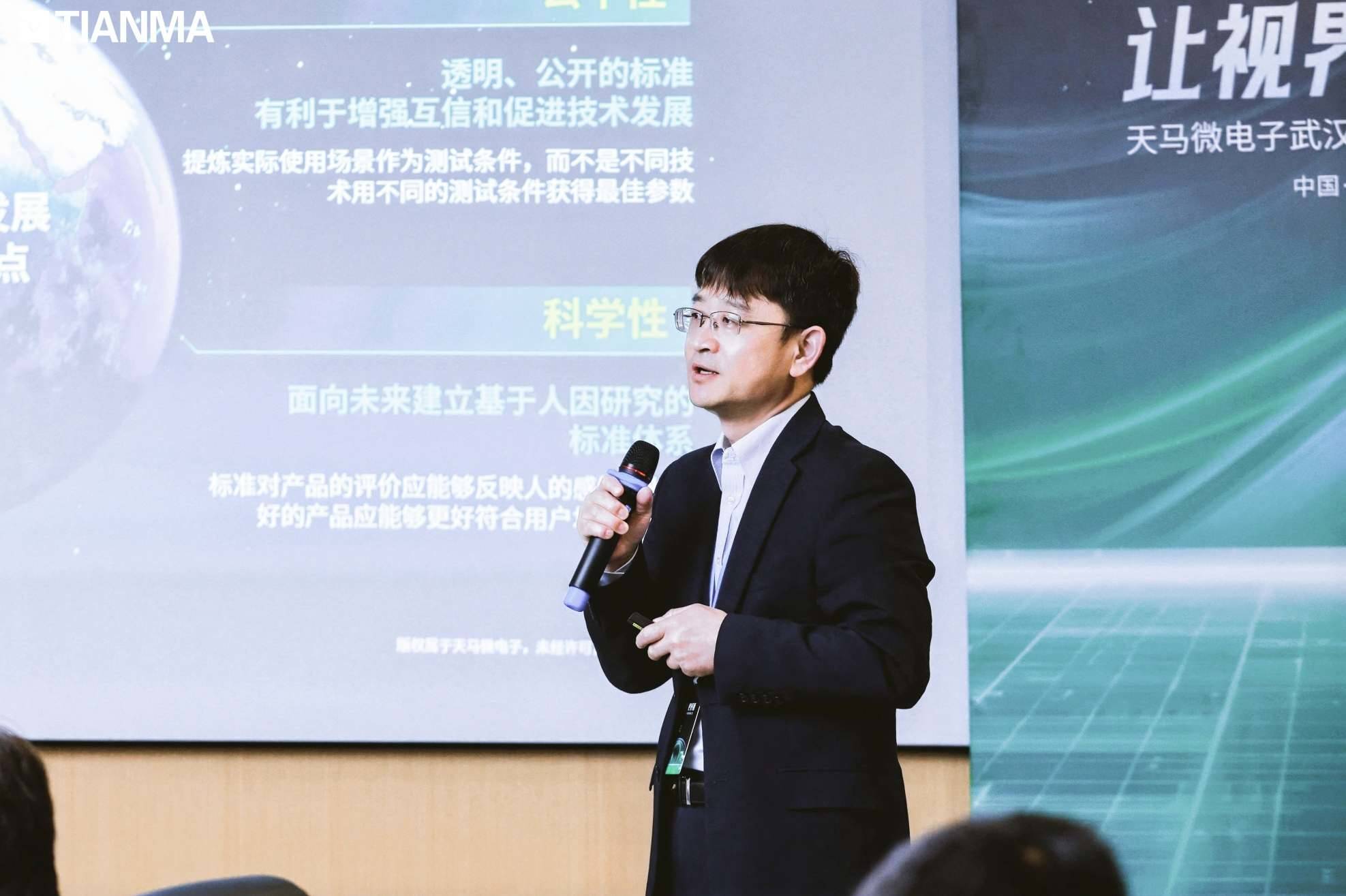 活动产学研分享环节,德国莱茵T?V电子电气服务总经理兼全球人体工学能力中心总监刘喜强在分享德国莱茵T?V 150多年标准演进史中揭示了答案:唯有以“人”为尺度,以标准为纽带,科技才能成为照亮人类视界的温暖之光。从CRT时代辐射安全(MPR II)到OLED时代能耗与环保认证,标准始终是技术发展的“底线”与“灯塔”。